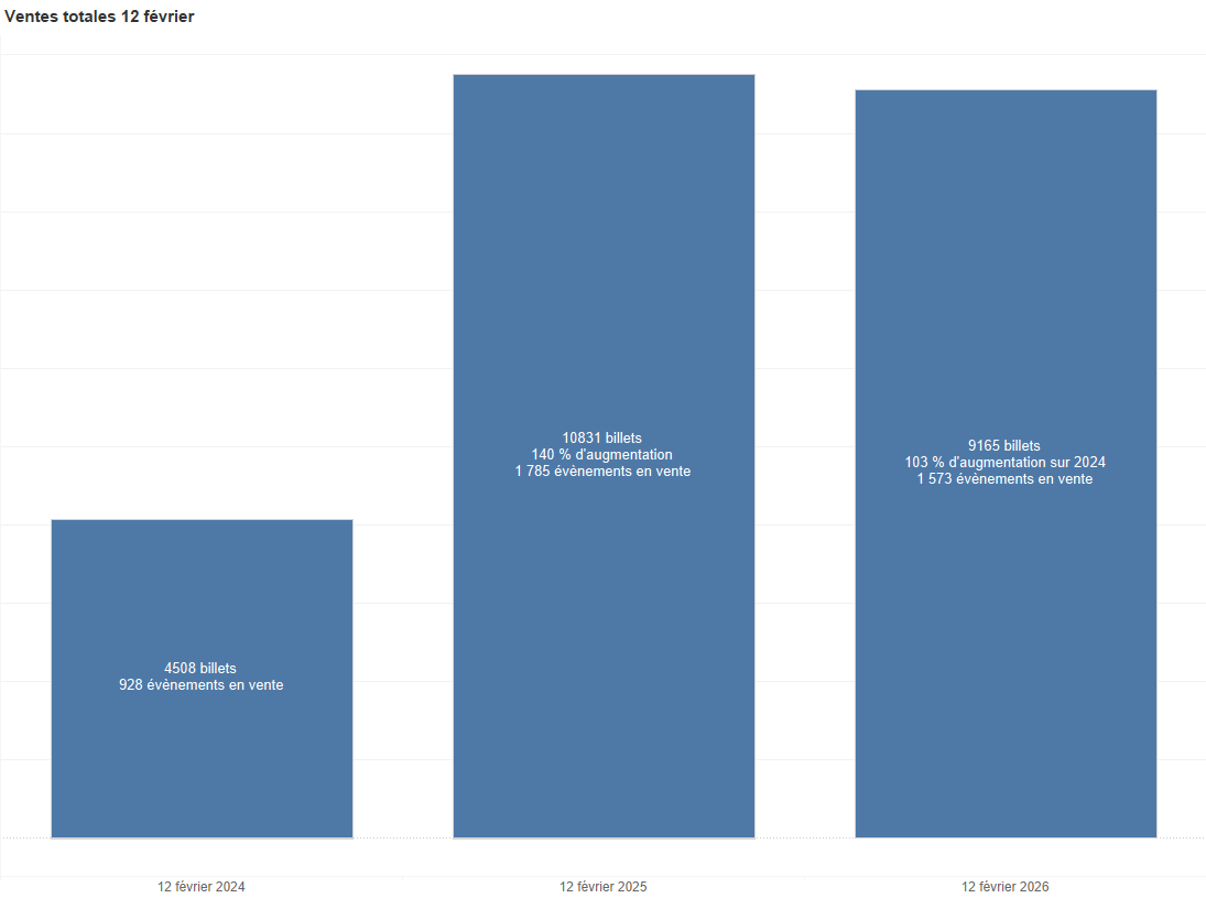 En dépit de ce léger recul, la Journée de la Billetterie 2026 demeure un succès. Les ventes totales de début février restent bien supérieures aux moyennes habituelles et encore une fois + de 90 % des billets ont été achetés au tarif régulier, preuve que le public est prêt à payer le prix juste lorsque l’offre est claire et attractive.